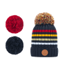 - Les pompons sont interchangeables grâce à un système d’aimant TORNADE et se mixent à l’infini, pour accorder votre bonnet à toutes vos envies.
