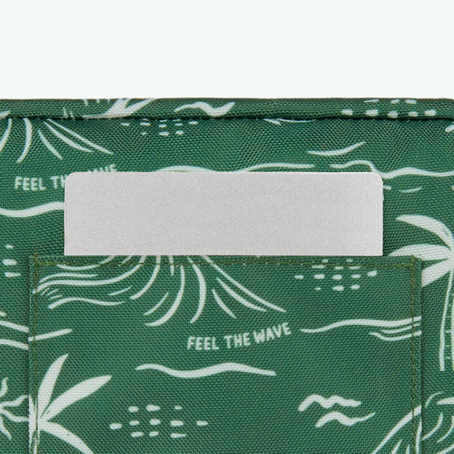 Le sac banane comprend un compartiment principal où vous pouvez ranger vos essentiels et une poche de la taille d'une carte bleu du côté motif.